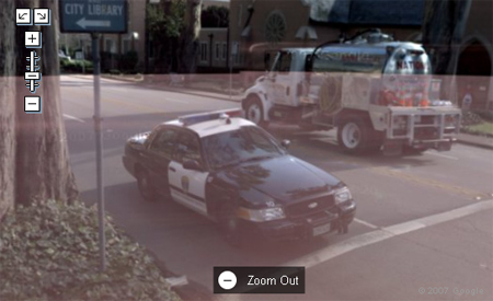 Images from the Google Streetview reveals that the police stopped the Google van. Click on the link to the first image, then zoom out and move north to see the action.