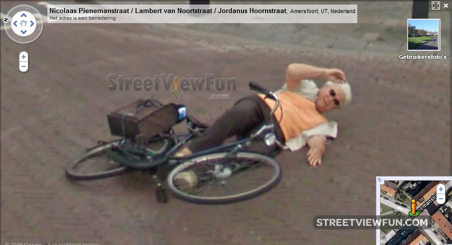 Google hit a lady? Accident Netherlands Removed by Google November 10, 2009November 15, 2009 by StreetViewFun.com StreetViewFun.com · Reply View larger map Before the accident: View larger map After accident, same lady? View larger map Local copy: Please wait... Similar Street View images Lady Desert – The Venus of Nevada Very helpful lady, giving this poor lost man directions. Google vs another car Google car gets in trouble in Nuevo Laredo, Mexico 🇲🇽 Curious motorcyclist sees Google car and crashes in front of a truck He is also making street view