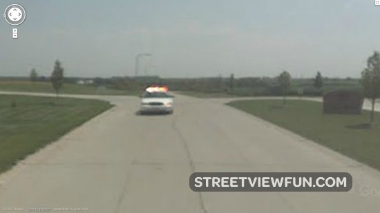 The police car apparently stop Google and drive away since there’s no more image of the police car on this road.