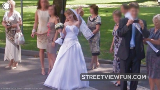Wedding bride waving to the Street View camera Latvia Shiny happy people May 15, 2012May 17, 2012 by StreetViewFun.com StreetViewFun.com · Reply Good decision by google not to blur this lovely wedding bride. Update: I noticed they’ve blurred the image now. Larger Please wait... Similar Street View images Wedding A wheelchair-bound bride on the road, next to a VW Beetle strange and umbrella (with a doll on top) Leaf on the google street view camera A wedding! Under repair or new Google Street View camera? Wedding car in Turkey The Google Street View Car Driver Forgot To Take The Cover Off The Camera Fallen Street View Camera In Las Vegas Nevada greetingwedding
