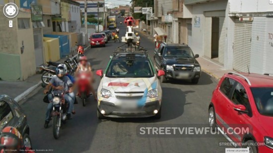 Google driver photographed by Google cameras, driving Google car
