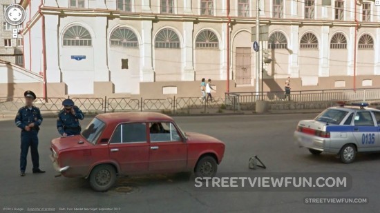Suspicious car Cars Russia March 14, 2013 by StreetViewFun.com StreetViewFun.com · Reply Larger Please wait... Similar Street View images Smashed Car on the Skewer Car repair with a piece of wood on the car hood, a tarp hanging over a trash can and a dressed up mannequin in the background This car has seen better days Gopnik car Old car in Copenhagen
