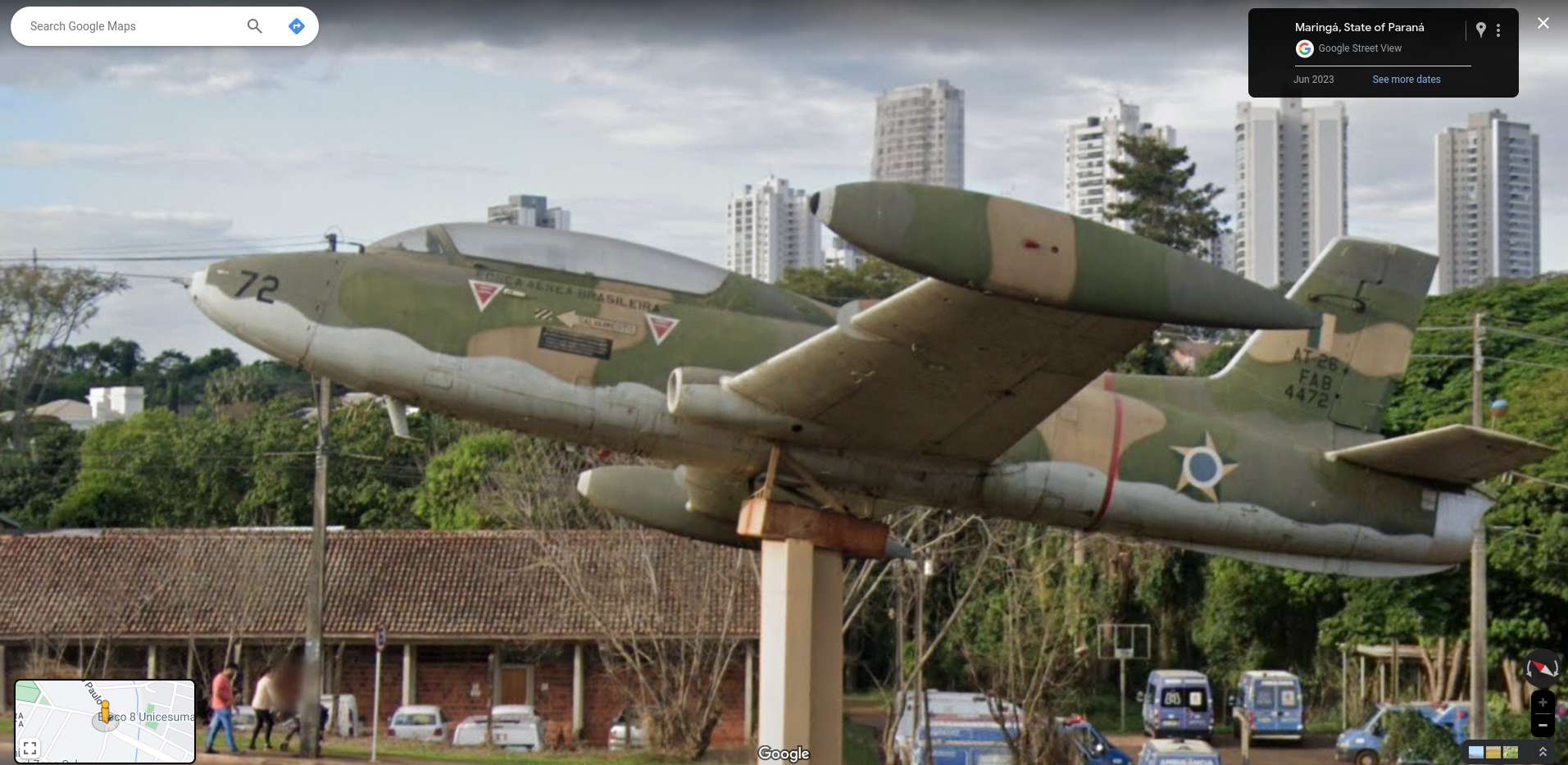 Airplane over roundabout of the avenue of the city of Maringá Airplane Brazil September 20, 2023September 13, 2023 by Bruno 902 Bruno 902 · Reply Another unusual place that is only seen in the ‘Cidade Canção’ (City surname). Link Please wait... Similar Street View images ✌️ for Google in Maringá, Paraná The ‘thinnest building’ of Maringá TV Tibagi (Rede Massa) press team follows Google car in Maringá London Telephone cabinet in Londrina – City’s 90th Anniversary Special #1 Biarticulated Bus crossing the wall in Curitiba city Airplane in flight in Texas Double airplane touchdown 🛬🛬 Batman’s City Airplane flying over sea? Airplane in flight AirplaneMaringáState of Paraná