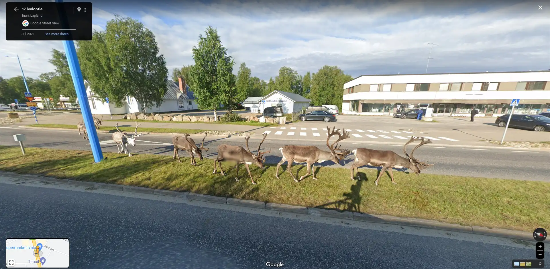 Army Reindeers Animals Finland July 21, 2023July 21, 2023 by Lolman Lolman · 1 comment Link Please wait... Similar Street View images Birds Army doggy134 was sleeping Barking Up the Wrong Tree Airship in Florida heaven is recorded by Google cameras Big Gopher on Roof with Hat Wrinkle found a friend Bruh The driver of google car relax Hi google in Finland Dog chases Google Maps car