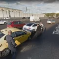 Google driver photographed by Google cameras, driving Google car
