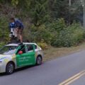 Google guy looking at computer screen inside Google Maps car