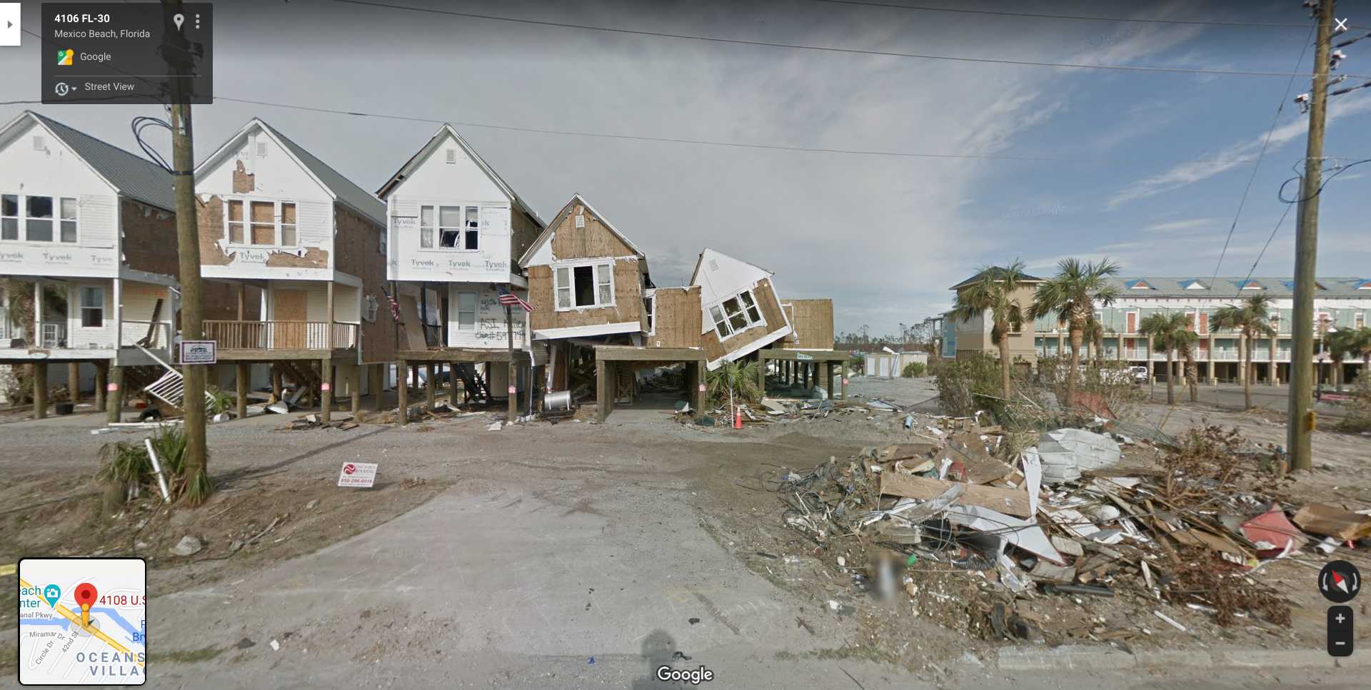 The satellite imagery is horrible it shows the whole town full of debris. The street view shows the aftermath from hurricane Michael.