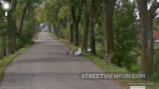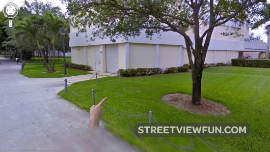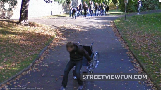 This is a Google 360 degrees Sphere image. Anyone can post these kind of panorama images to Google Maps, so it’s not the real Street View images. But this sphere is special. It shows a Google guy with the Street View cameras in a backpack. The image was taken/added in January 2013 by Bryan Kiechle.