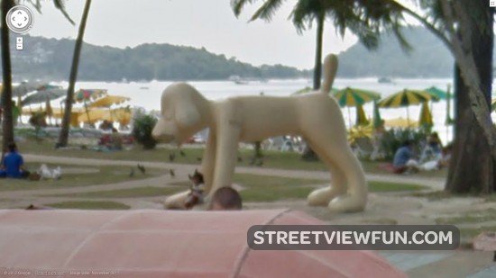 Fun view of the Street View trike equipment and crew