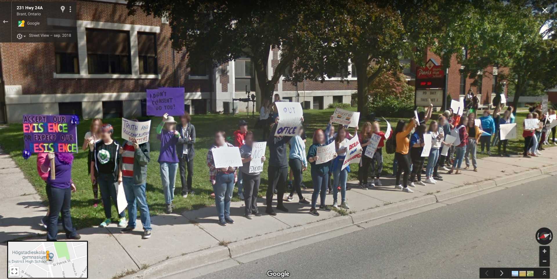 Pride Canada June 10, 2019May 25, 2019 by StreetViewFun.com StreetViewFun.com · Reply High school students support pride at the street in Paris, Ontario, Canada. Larger (thanks JR)