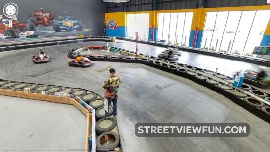 Driving racing kart at Fun City