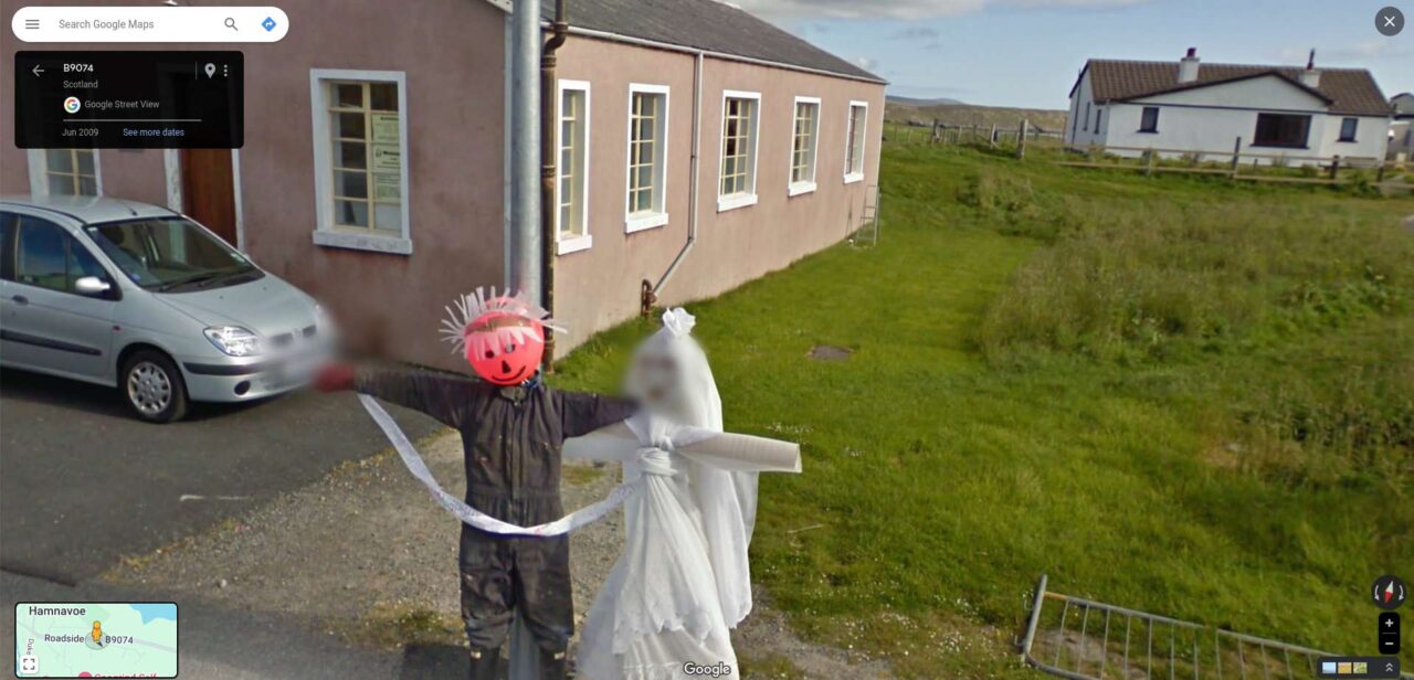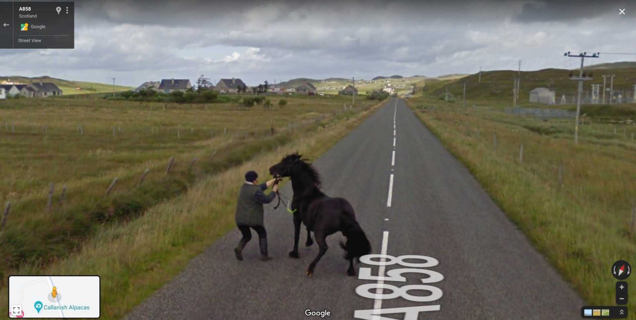 Over the summer, I went to the very North of the Isle of Lewis on a field trip to map the geology there with a close friend of mine. The google street view car went past. We had a geological hammer. The following masterpiece, now on google street view, was the result pic.twitter.com/NIBPnxuIl5
